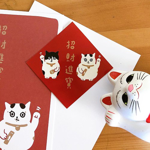 Fortune Beckons, Lucky Cat Spring Couplets Stickers (5pcs)