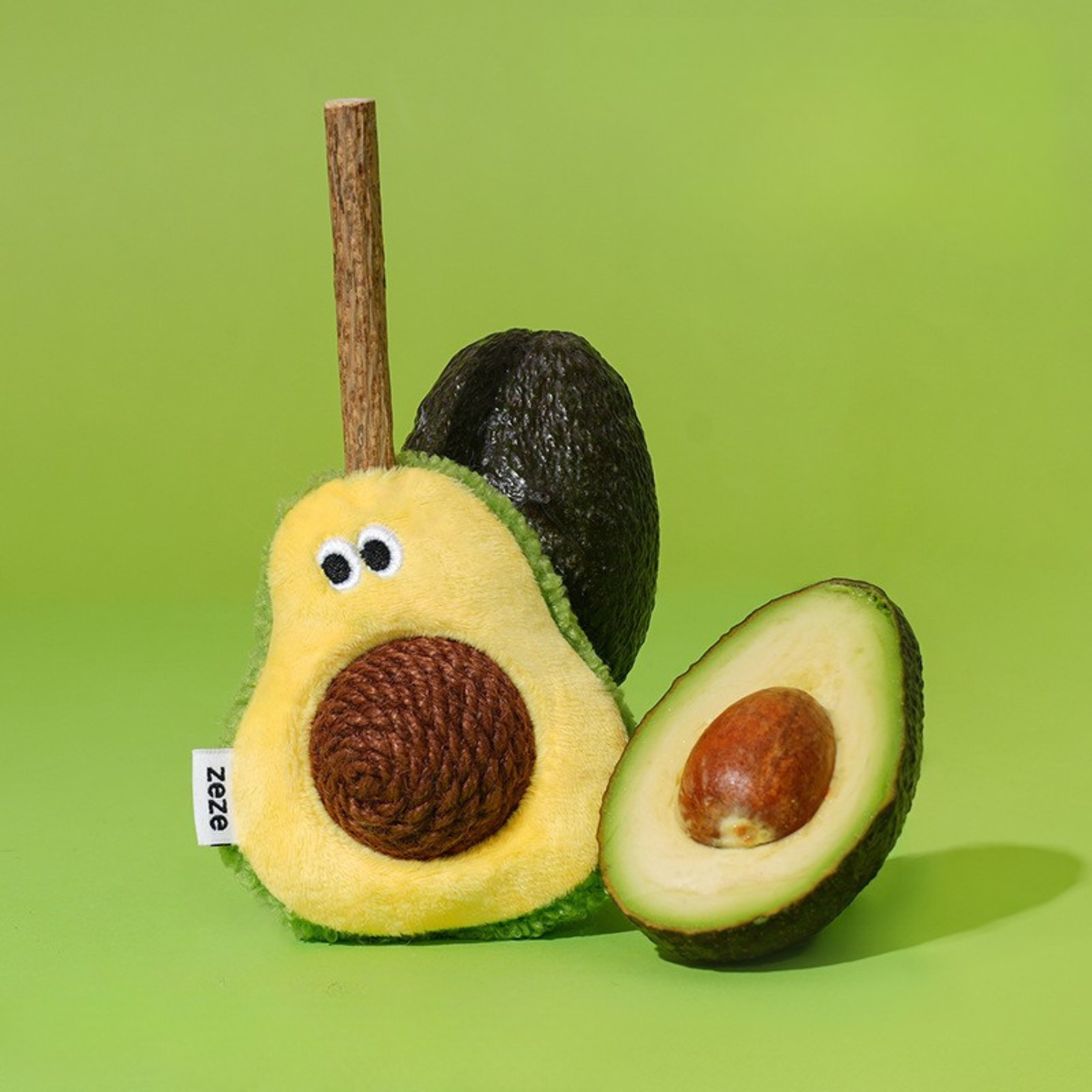 This avocado cat toy is a healthy serving of fun, featuring a soft plush exterior, a natural silvervine stick stem, and a removable sisal rope "pit". Designed to spark your cat’s natural curiosity, the sisal ball can be popped out for an extra game of chase, making every play session feel like a fresh discovery.