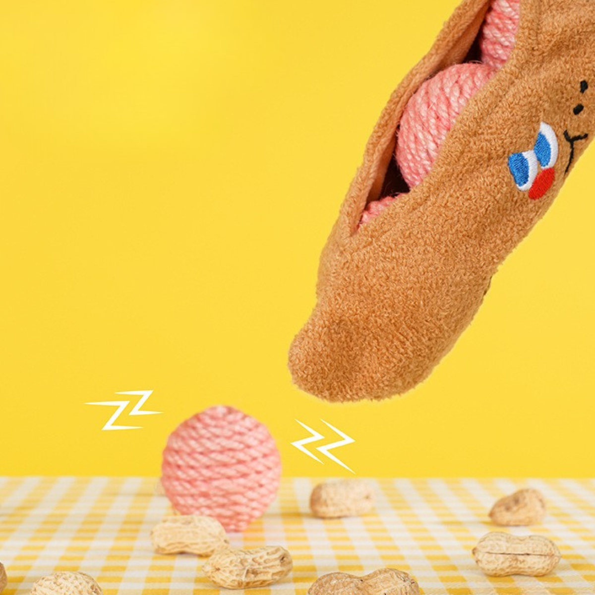 Get ready for a "shell" of a good time! This interactive peanut cat toy is the ultimate brain-teaser for curious kitties who love a challenge. Designed like a giant peanut, the soft plush pod hides durable sisal rope "kernels" inside—with three balls in Large size and two in Small size—inviting your cat to use their paws and instincts to fish them out. For an extra layer of excitement, each sisal ball contains a built-in bell that tinkles with every bat and pounce.